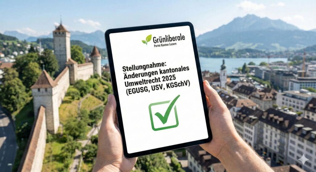 Die GLP Kanton Luzern fordert in ihrer Stellungnahme zum Kantonalen Richtplan eine konsequentere Ausrichtung auf Nachhaltigkeit und Lebensqualität. Zentrale Punkte sind die verbindliche Einhaltung kantonaler Velostandards , die Priorisierung flächeneffizienter Mobilität (ÖV, Fuss- und Veloverkehr) zur Bewältigung des Verkehrswachstums sowie die Sicherung hochwertiger Grün- und Naherholungsräume als zwingende Bedingung für die innere Verdichtung. Zudem werden griffigere Ziele für die Biodiversität, die Klimaanpassung und eine konsequente Kreislaufwirtschaft verlangt