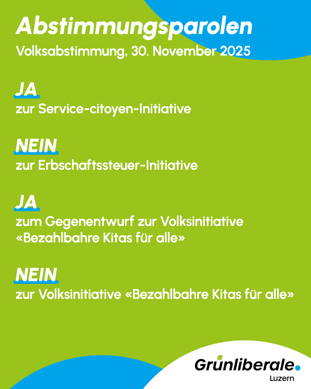 GLP Kanton Luzern fasst die Parolen für die Abstimmungen vom 30.11.25